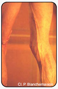 Конечность осматривается в положении наружной ротации, колено слегка согнуто,