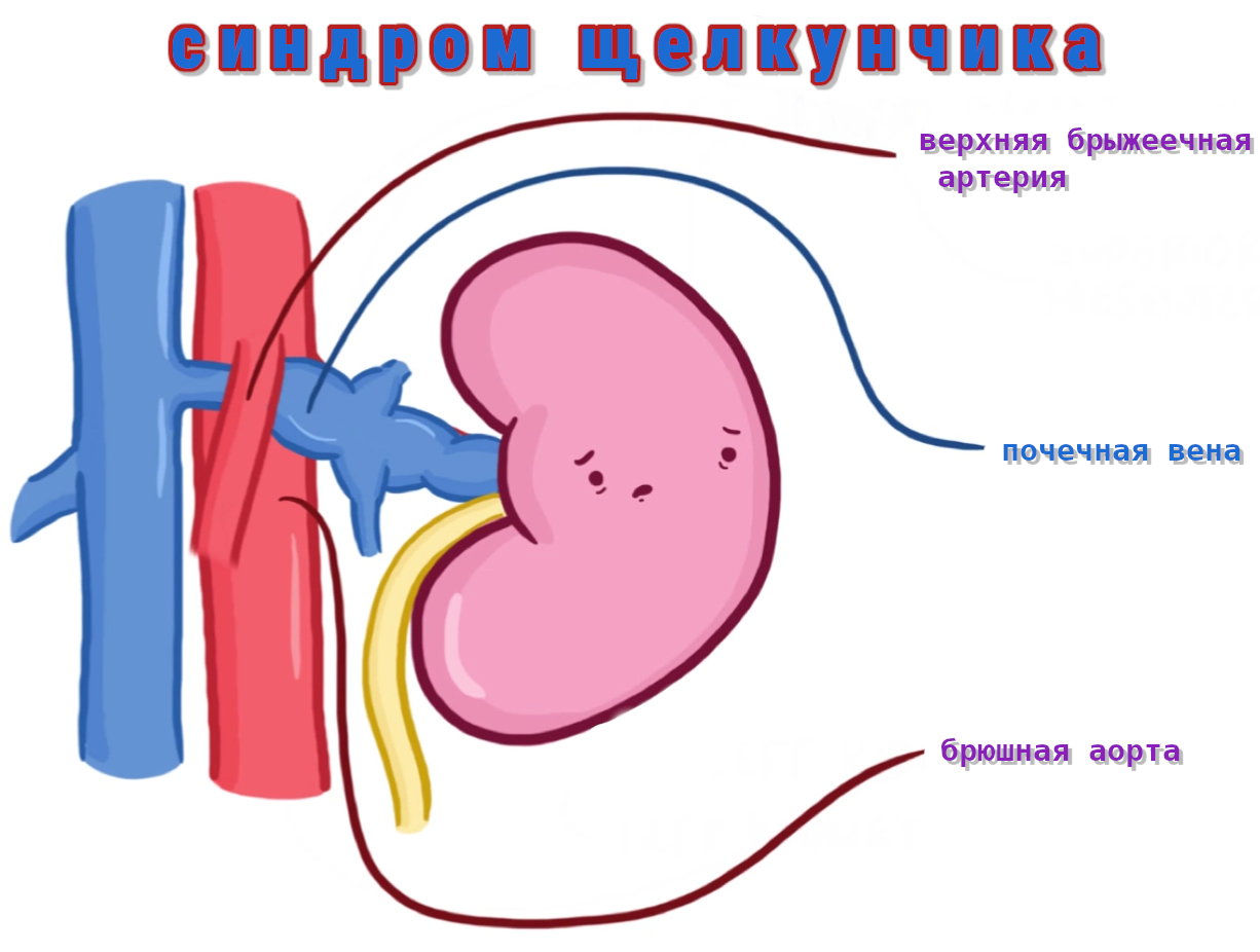 называемый синдром щелкунчика, когда левая почечная вена зажимается между аортой и